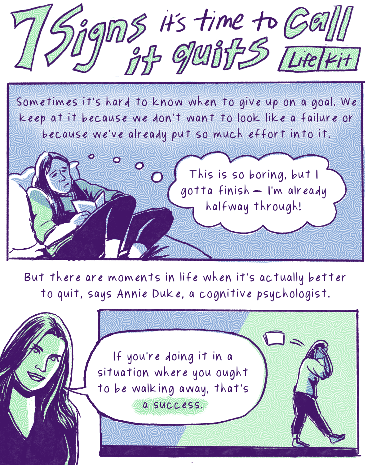 Cognitive psychologist Annie Duke, author of Quit: The Power of Knowing When to Walk Away; career educator Colin Rocker; and psychologist and professor Angela Duckworth explain how to know when it’s time to move on.